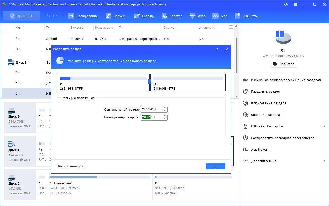 AOMEI Partition Assistant – мощная программа для работы с жёстким диском, администрирования разделов для ПК и рабочих станций. Программа ответит на такие вопросы, как: “Как изменить размер раздела или объединить разделы без потери данных? Как увеличить производительность компьютера?” Кроме того, PA включает AOMEI Dynamic Disk Manager Pro (DDM), что означает наличие возможности управления динамическим томом диска.