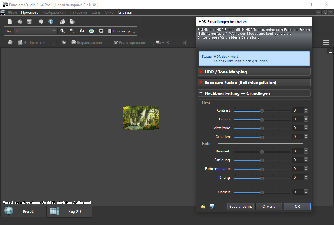- Ручные настройки пост-обработки всех шагов создания панорамы