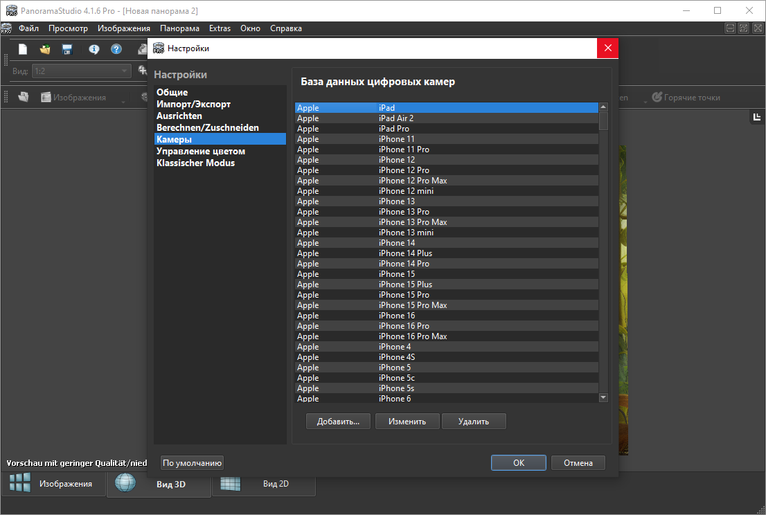 - Импорт существующих панорамных изображений для дальнейшей обработки