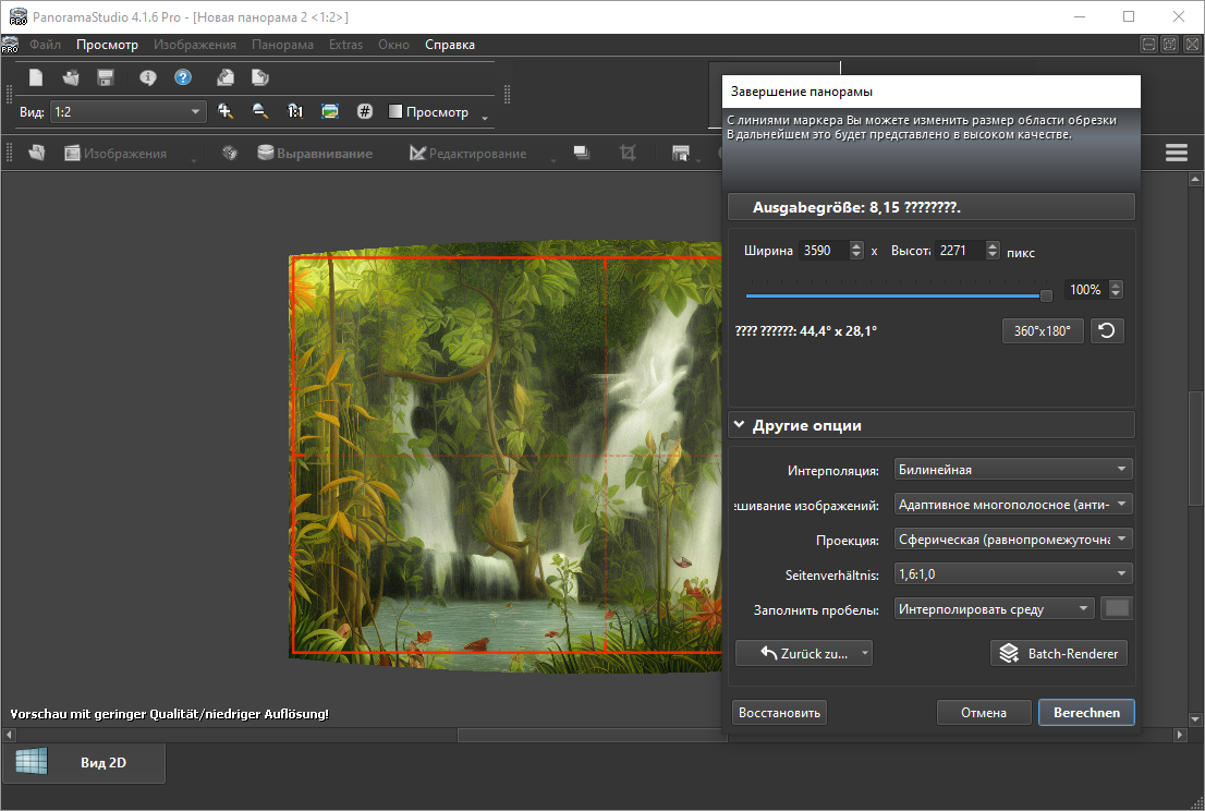 - Поддержка цилиндрического, сферического и перспективного проектирования панорамы