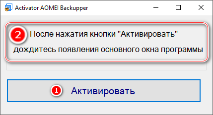 - Скопировать файл Activator_AOMEI_Backupper_v2.exe из папки crack в папку установленного ПО. Запустить патч. Дождаться окончания работы патча.