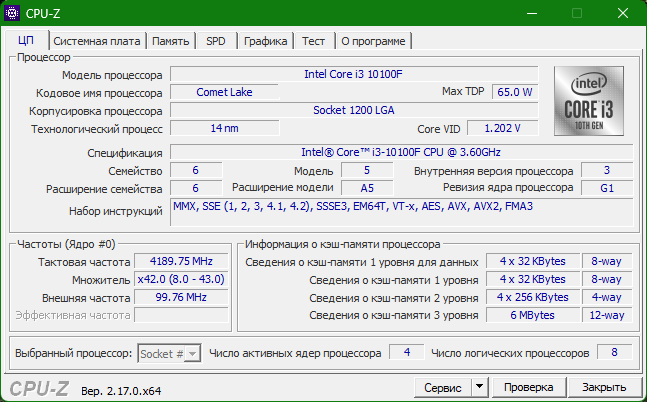 - Точно определяет основные характеристики процессора: наименование, тип ядра и степпинг, используемый разъем, поддержку тех или иных мультимедийных инструкций, объем и параметры кеш-память