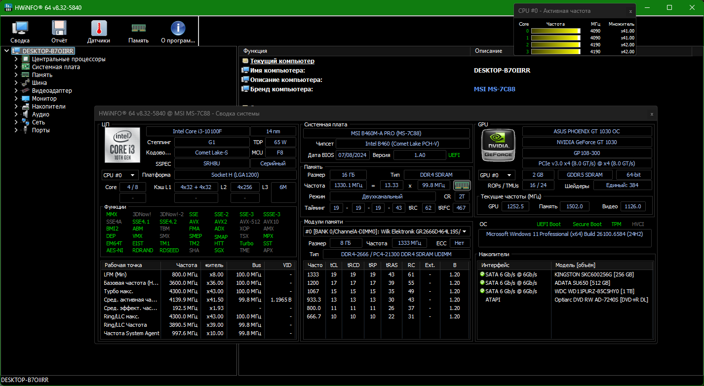 HWiNFO32/64 - мощный информационный инструмент, который собирает важные данные о состоянии аппаратных частей компьютера, включая процессоры, видеокарты, RAM, жёсткие диски, сетевые карты, адаптеры, показания датчиков и т.д. Инструмент поставляется как в установочном варианте, так и портативном.