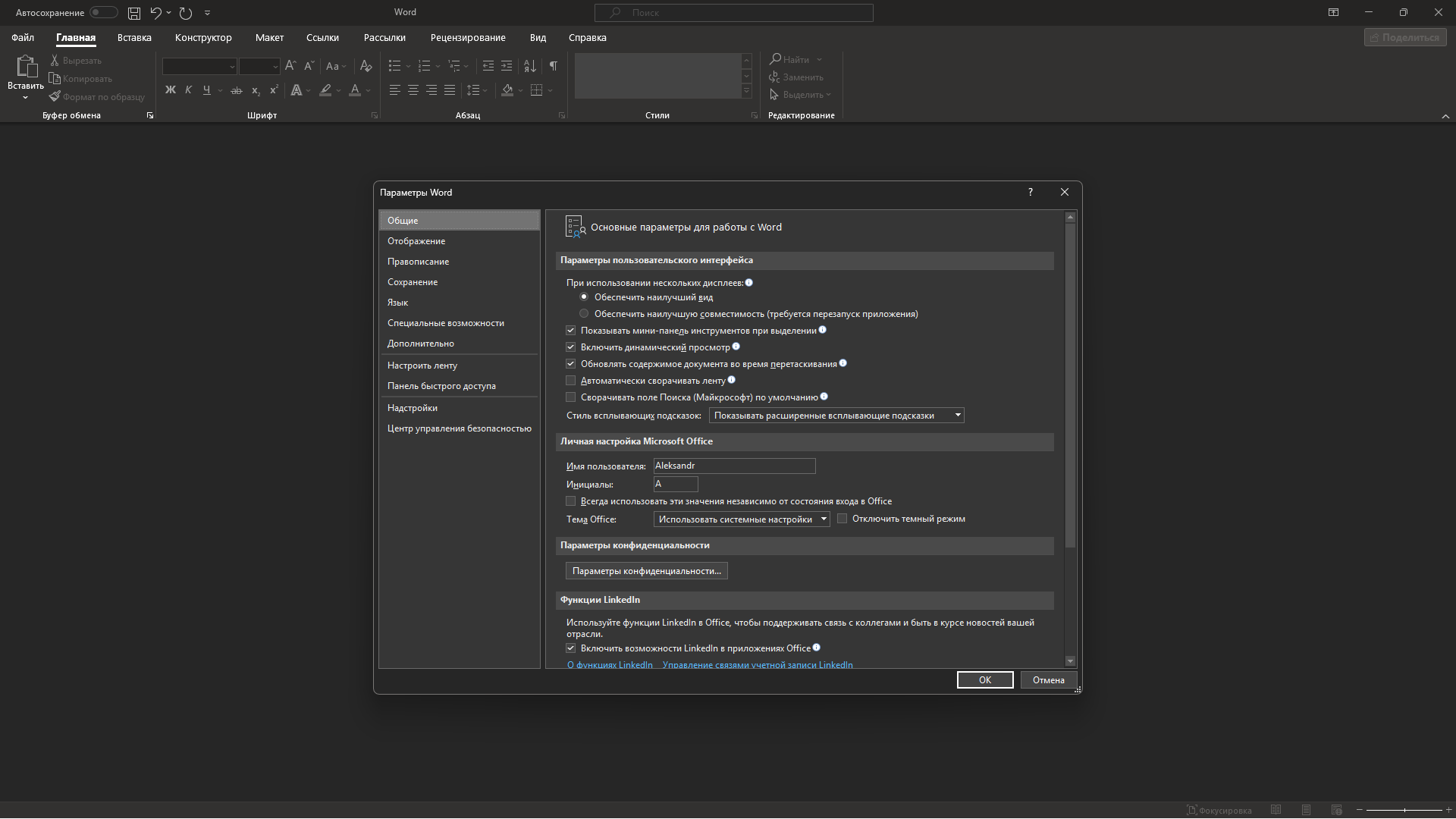 Установка Standard с приложением WORD