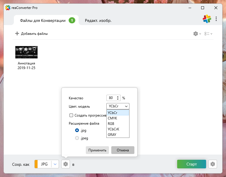 Цветовая модель JPEG (CMYK, RGB, YCbCr, YCbCrK, Gray)
