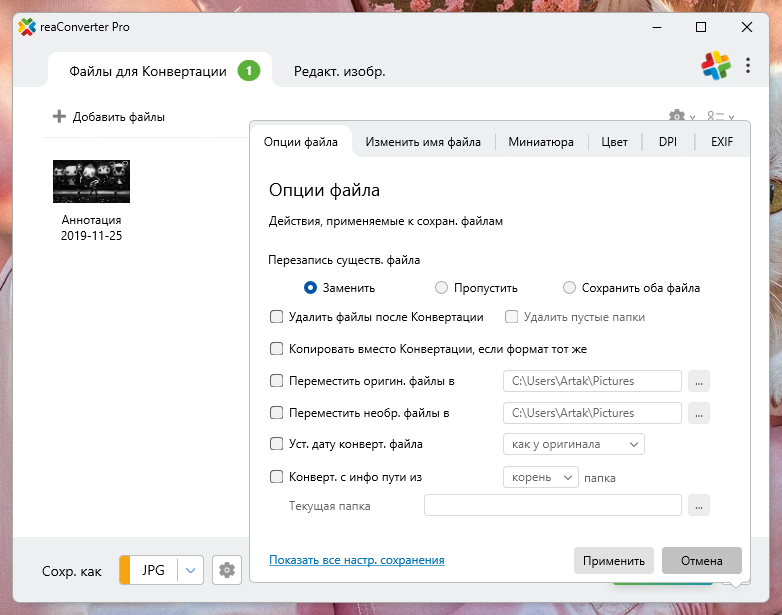 reaConverter Pro - мощный инструмент для тех, кто имеет дело с большим количеством изображений. C помощью программы вы сможете организовать групповую обработку и редактирование изображений. Поддерживается огромное количество форматов.