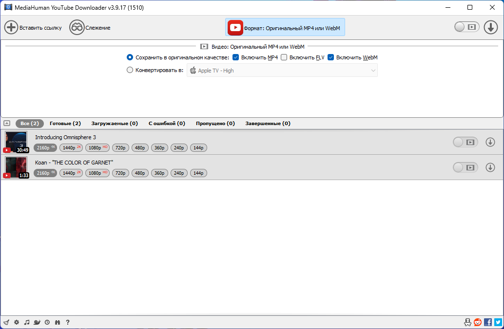 Программа поддерживает загрузку всех доступных разрешений, но выбор остается за вами, будет это 720p, 1080p, 4K или 8K, 60 fps или 30.