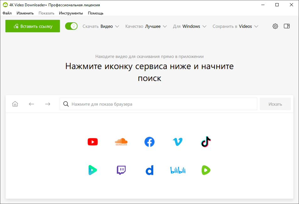 - 4K Video Downloader доступен на нескольких платформах. Скачайте его на ваш Windows, macOS или Linux.