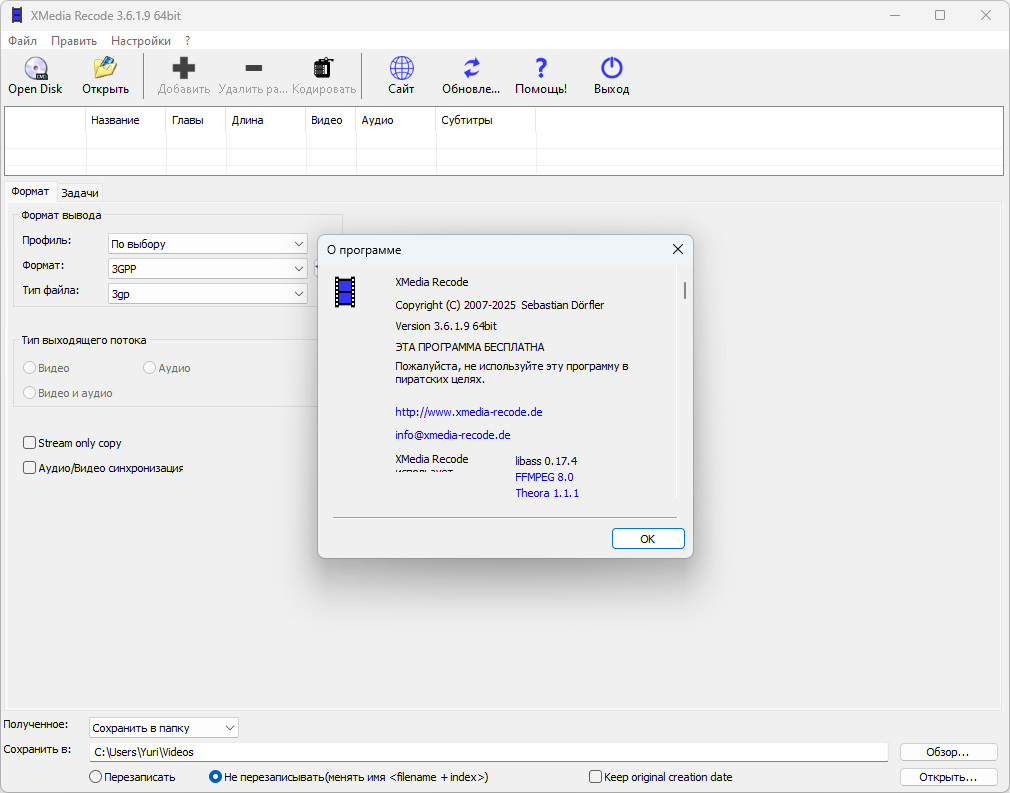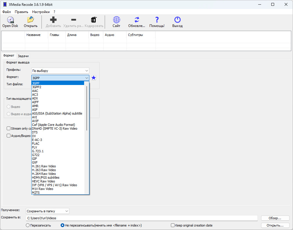 - XMedia Recode может конвертировать только незащищённые DVD-диски.
