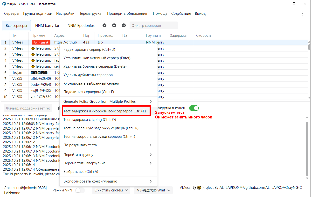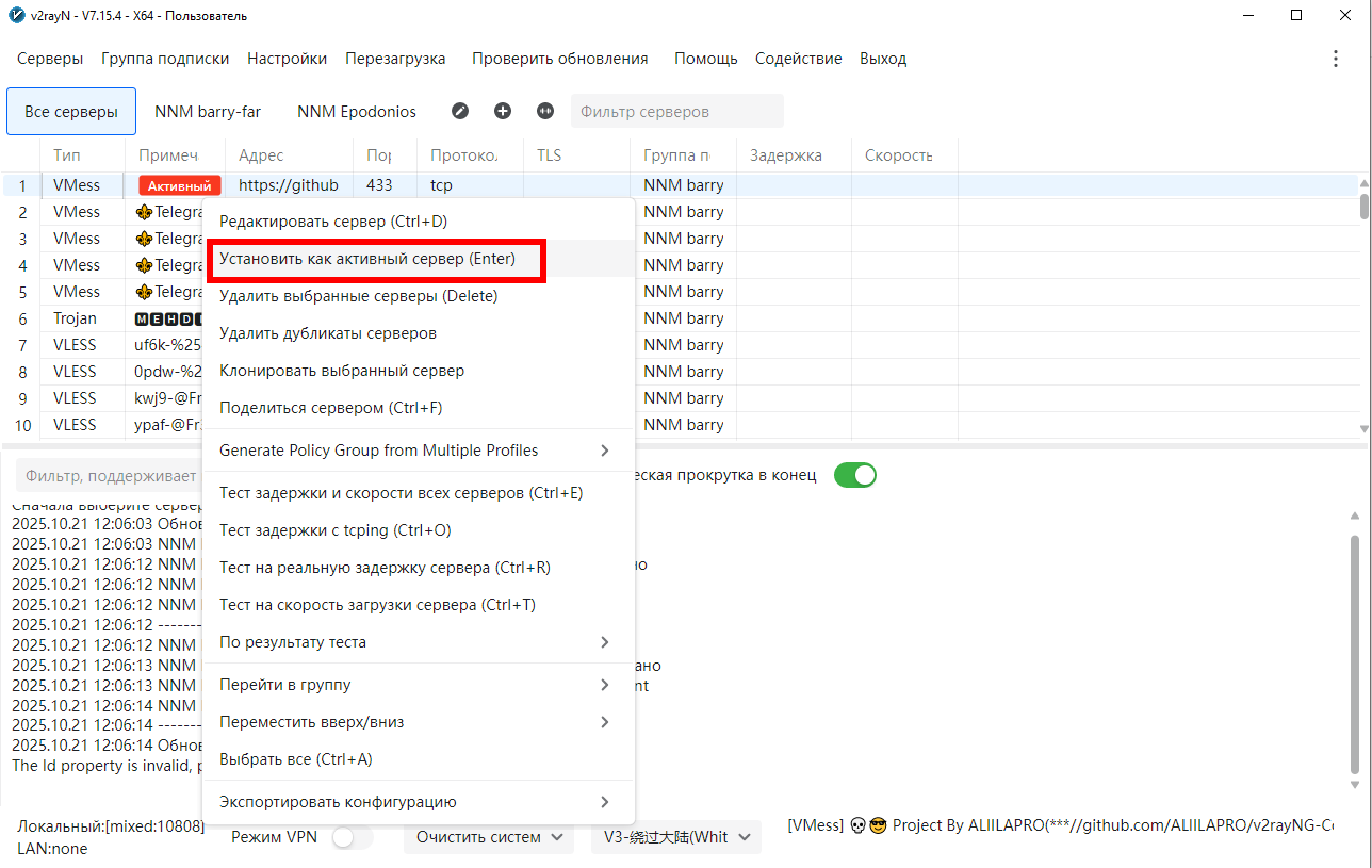 V2rayN - это бесплатный и открытый клиент для Windows для V2Ray, который предоставляет вам простой интерфейс для управления вашими серверами V2Ray. С возможностью переключения между серверами, настройки правил маршрутизации и мониторинга статуса подключения, V2rayN упрощает использование V2Ray и делает его более доступным. V2Ray является ядром Project V, набора инструментов, разработанных для помощи в создании частной сети через Интернет. V2rayN помогает управлять вашими серверами и обходить интернет-цензуру проще, подобно PuTTy и SoftEther VPN Client.