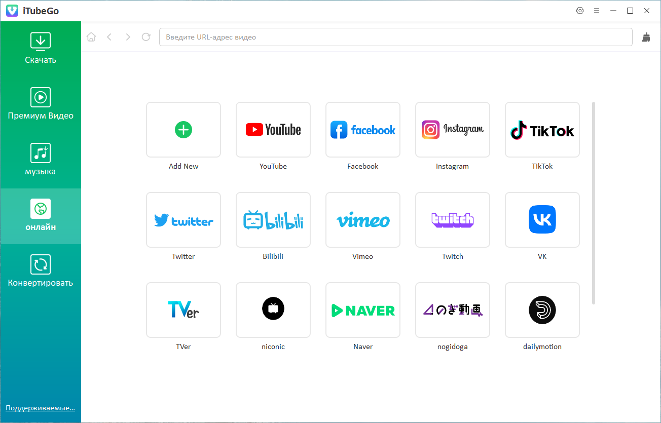 • iTubeGo Video Converter поддерживает преобразование медиафайлов с веб-сайтов потокового видео или с локальных компьютеров в целевой формат