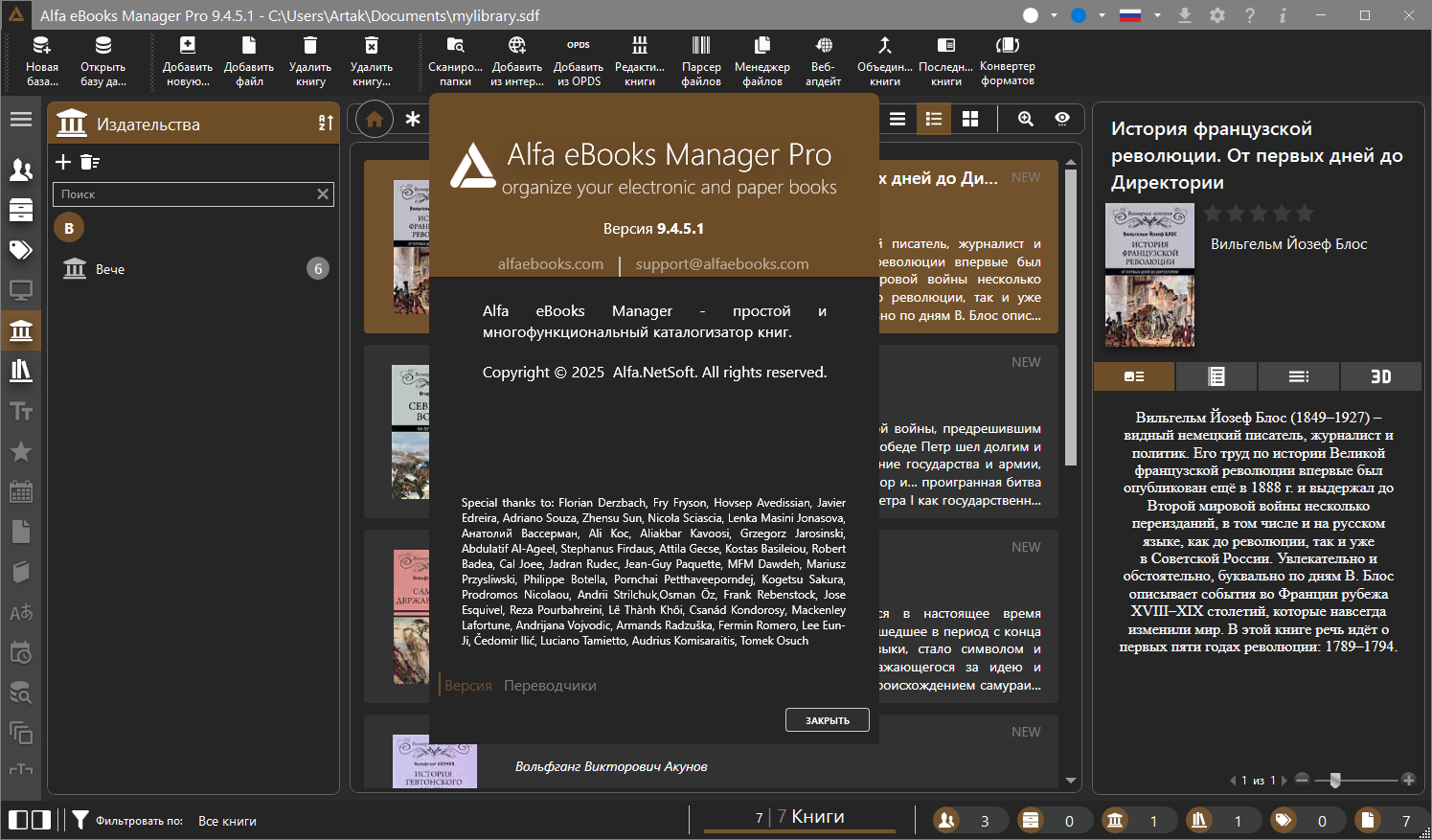 Alfa eBooks Manager 9.4.5.1 Pro & Web [Multi/Ru] - Версия программы: 9.4.5.1