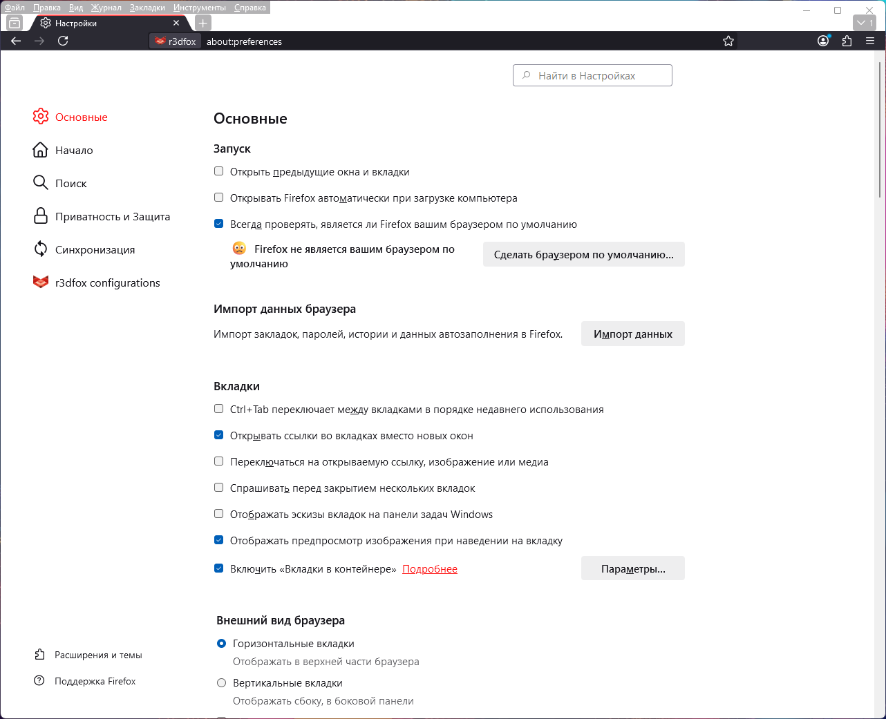 - Возможность отключить e10s! (Экспериментальная и немного сломанная)