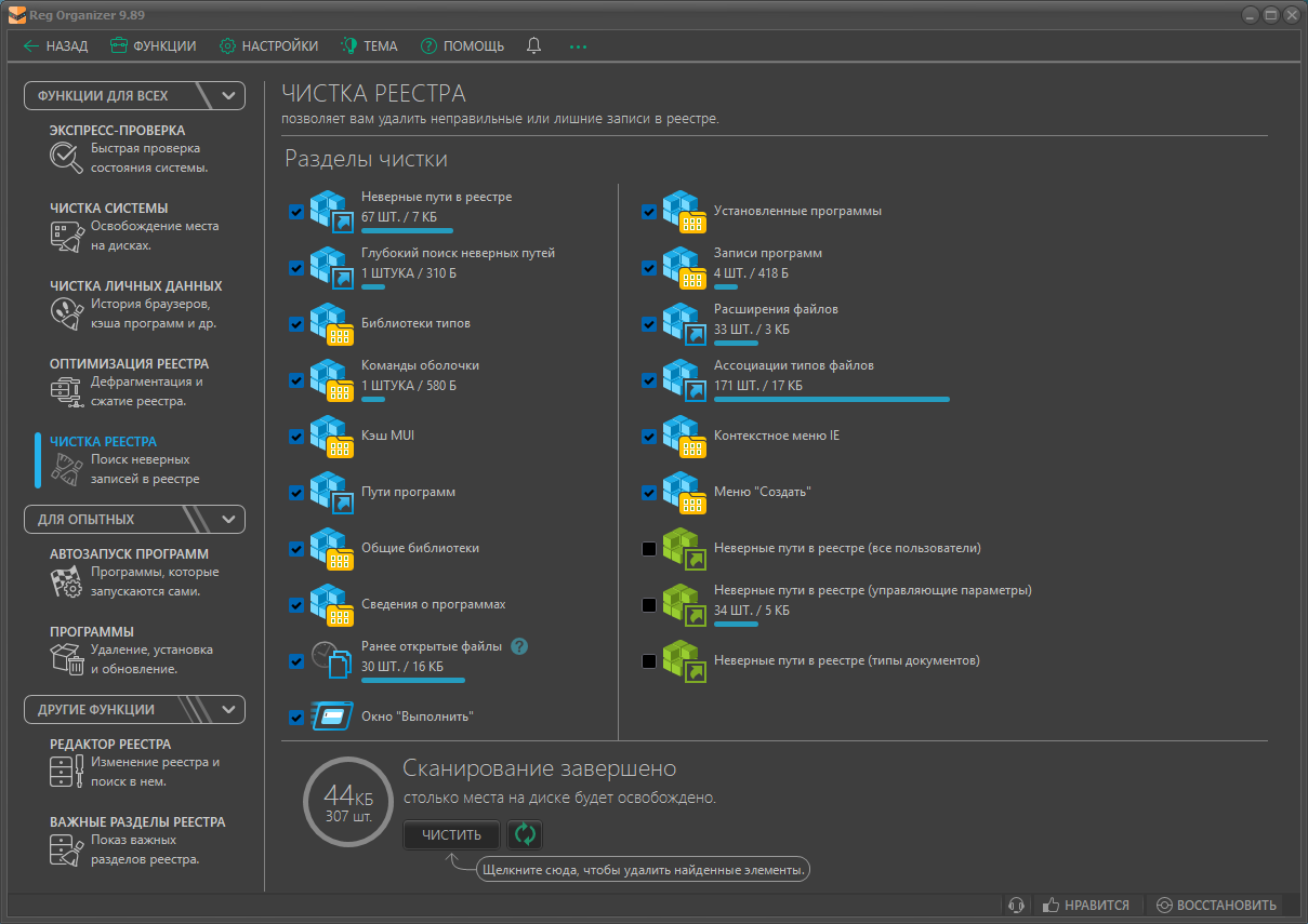 Reg Organizer® - это многофункциональная программа для комплексного обслуживания системного реестра операционных систем Micorosft Windows. Позволяет проводить чистку реестра, его сжатие и дефрагментацию. Имеет мощный редактор системного реестра и расширенную функцию поиска и замены данных. С помощью утилиты Reg Organizer можно осуществлять предварительный просмотр импортируемых reg-файлов (в том числе и из Проводника). Кроме того, позволяет производить полное удаление программного обеспечения (основана на технологии Full Uninstall™), подчищая все "хвосты", которые остаются в системе при обычном удалении.