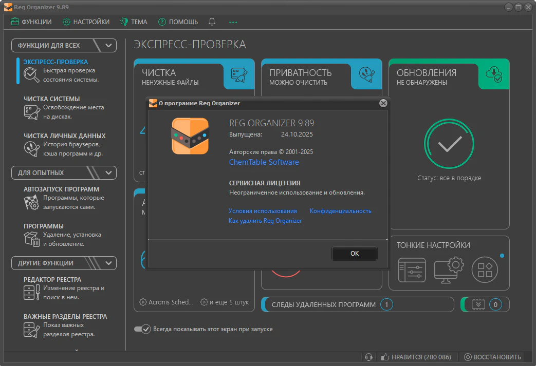 Reg Organizer® - это многофункциональная программа для комплексного обслуживания системного реестра операционных систем Microsoft Windows. Позволяет проводить чистку реестра, его сжатие и дефрагментацию. Имеет редактор системного реестра и расширенную функцию поиска и замены данных. С помощью утилиты Reg Organizer можно осуществлять предварительный просмотр импортируемых reg-файлов (в том числе и из Проводника). Кроме того, позволяет производить полное удаление программного обеспечения (основана на технологии Full Uninstall™), подчищая все "хвосты", которые остаются в системе при обычном удалении.